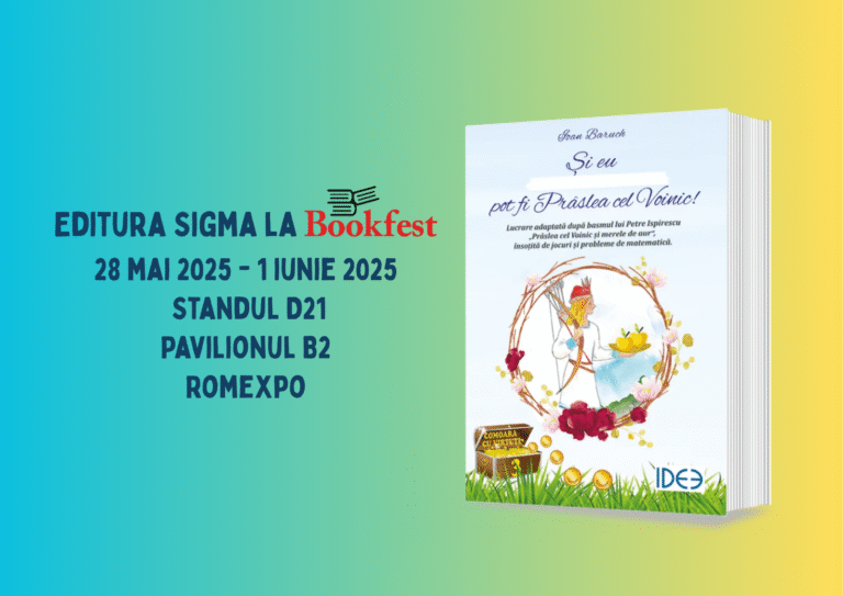 Volumul „Și eu pot fi Prâslea cel Voinic” va fi prezent la standul Editurii Sigma din cadrul Salonului Internațional de Carte Bookfest. Este o propunere ideală pentru biblioteci personale, pentru ore de lectură alternativă și pentru toate spațiile în care lectura se îmbină cu dezvoltarea emoțională și intelectuală.